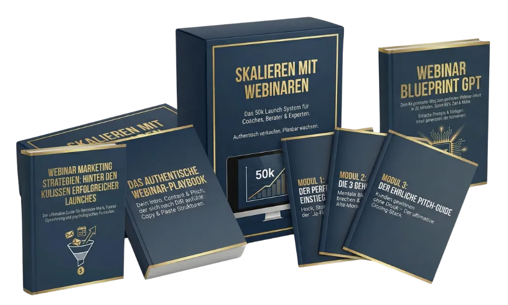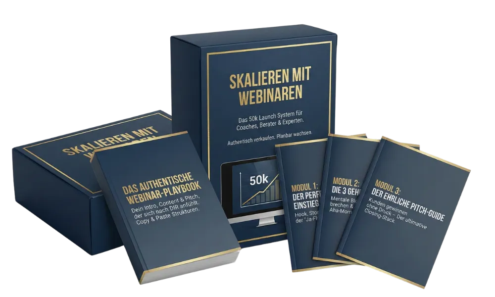 Erfahre die erprobte 7-Schritte-Strategie für verkaufende Webinare – ohne Bauchgefühl und ohne endlose Tests. Diese bewährte Methode brachte bereits über 500 Coaches messbare Pipeline-Ergebnisse!