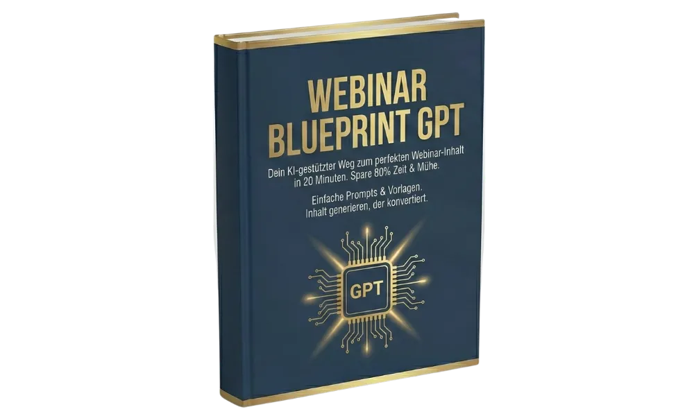Erhalte Zugang zu unserem exklusiven Blueprint-GPT, der dir in nur 90 Minuten die komplette Webinar-Struktur und alle Inhalte erstellt. Keine wochenlange Vorbereitung mehr – einfach Inputs eingeben und dein verkaufendes Webinar ist fertig konzipiert